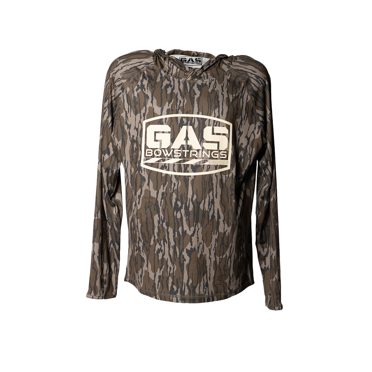 The Performance Lightweight Hoodie is designed for active wear with UPF 50 sun protection and a lightweight, athletic fit. Made from a 96% polyester / 4% spandex blend, it wicks moisture and features an oversized hood, thumbhole sleeve cuffs, and a curved back hem for added coverage. Available in Bone or Mossy Oak Bottomland Camo.